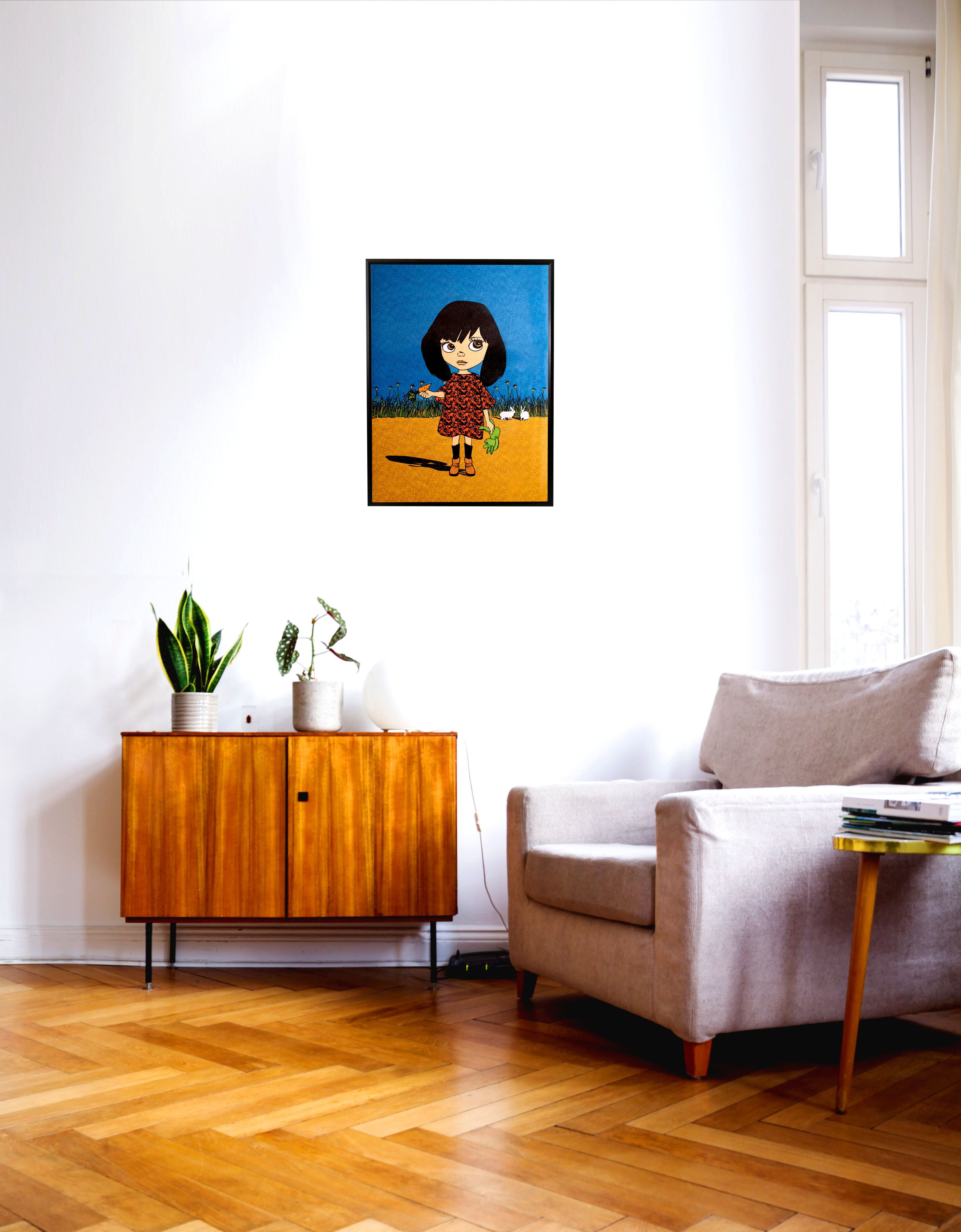 「Rabbit hunter_NO.13」は、うさぎのぬいぐるみとにんじんを手に持った小さなハンターが描かれたデジタルイラスト作品です。うさぎさんと一緒に過ごし、時には一緒に狩りをする…そんな想像を掻き立てる作品です。インテリアやお子様の部屋に飾って、世界観を広げてみませんか?
