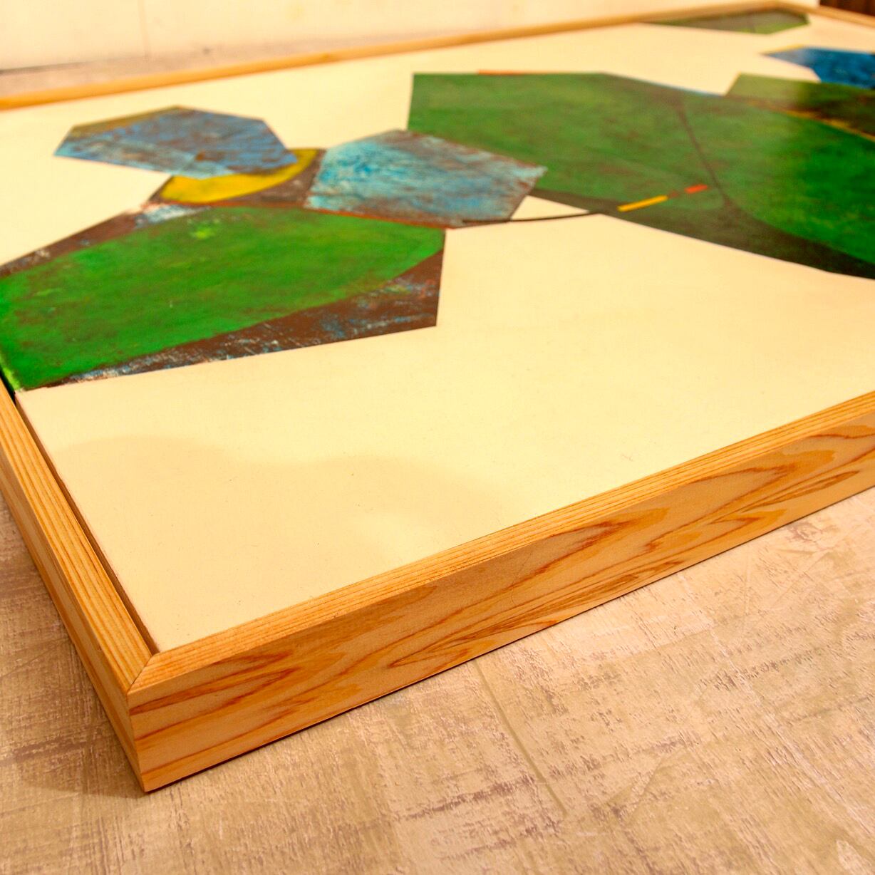 額装済ですのですぐに壁に飾ることができ、見た人全てに自由な発想や世界観を与えてくれます。 あなたも、この作品を部屋に飾ってみませんか? 独自の世界観を広げ、他の人とは違う芸術性をお楽しみいただけます。 額縁(ヒノキ)オイルスティン、ナチュラル仕上。