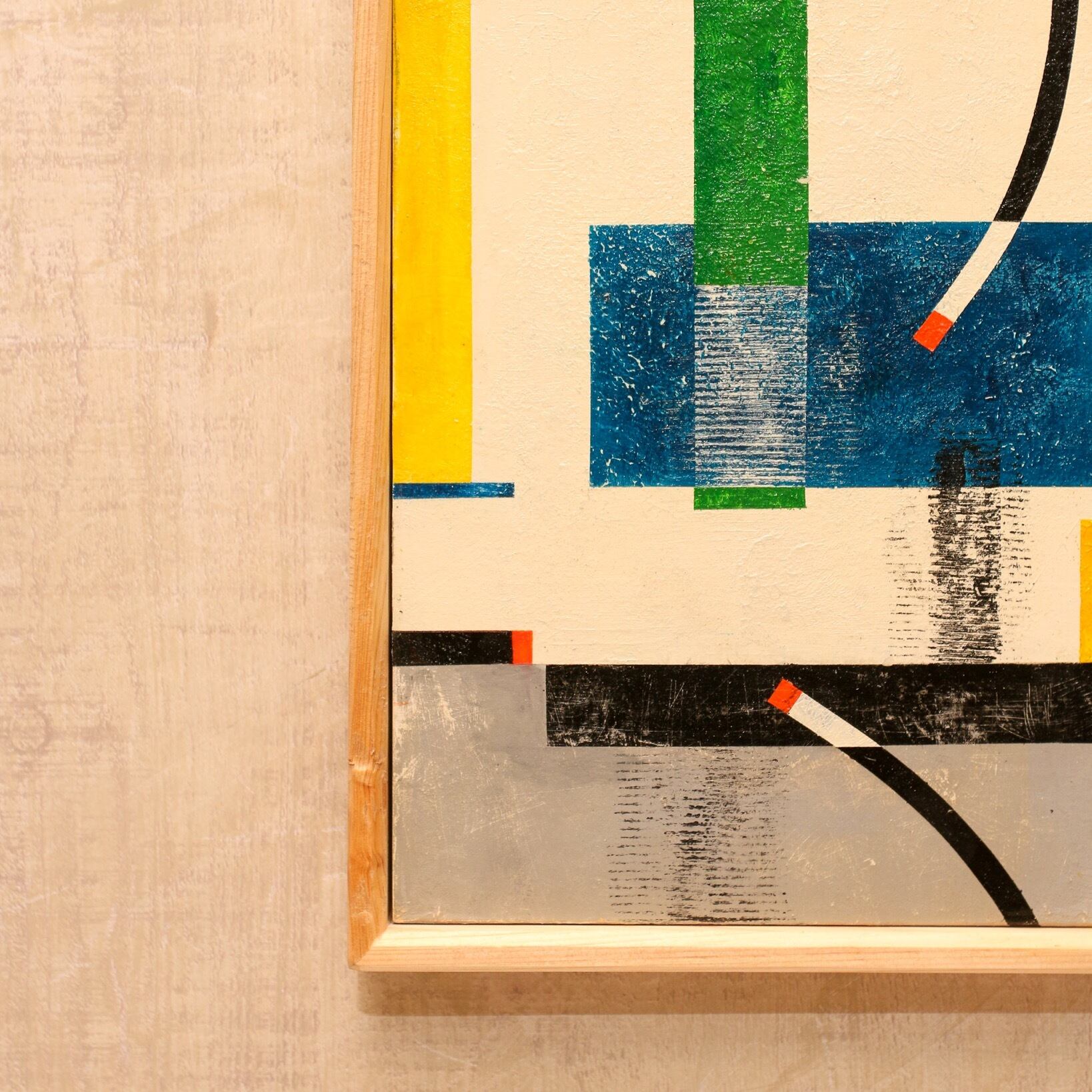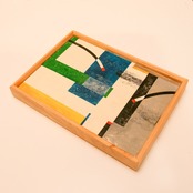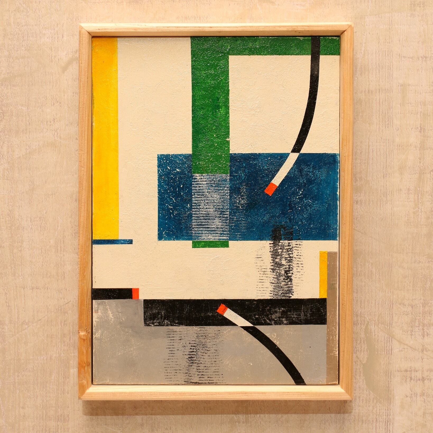 繊細な線と鮮やかな色使いが特徴のSmall LegoNo.153。まるでレゴブロックのようなコンパクトなサイズ感で、どんなインテリアにもマッチします。ブルーとグリーンのコントラストが美しいこのアート作品は、空間に深みと活気をもたらします。