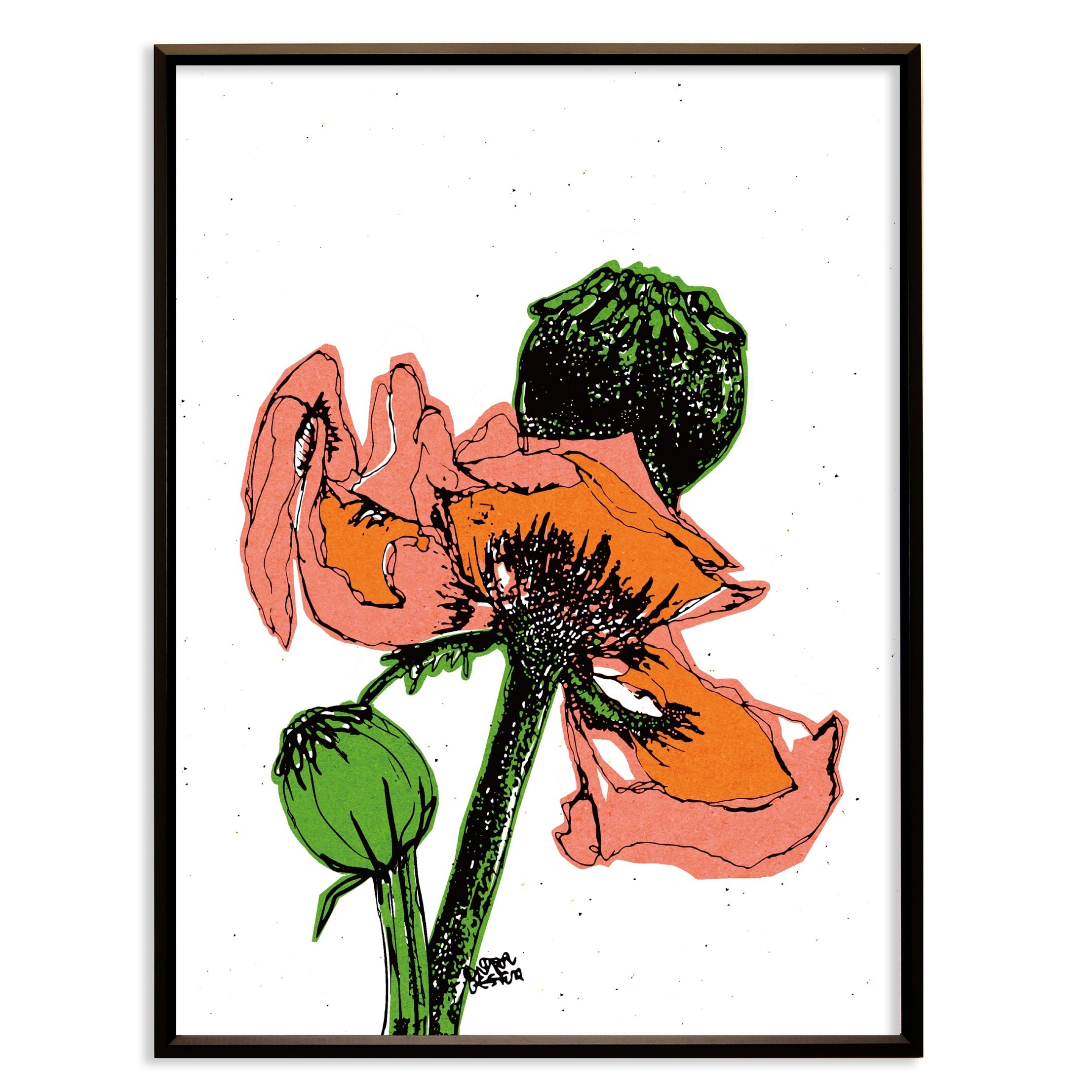 朽ちゆくポピーの美しさを描いたイラスト作品、Dying poppiesr No.166 グリーンとコーラルが混ざり合い、しっとりと朽ちていく様子を表現しています。その独特の色合いは、どこかメランコリックでありながらも美しさを感じさせます。壁に掛けたり、どんな場所にも映える存在感。あなたのお部屋に柔らかなアクセントを与えてくれることでしょう。