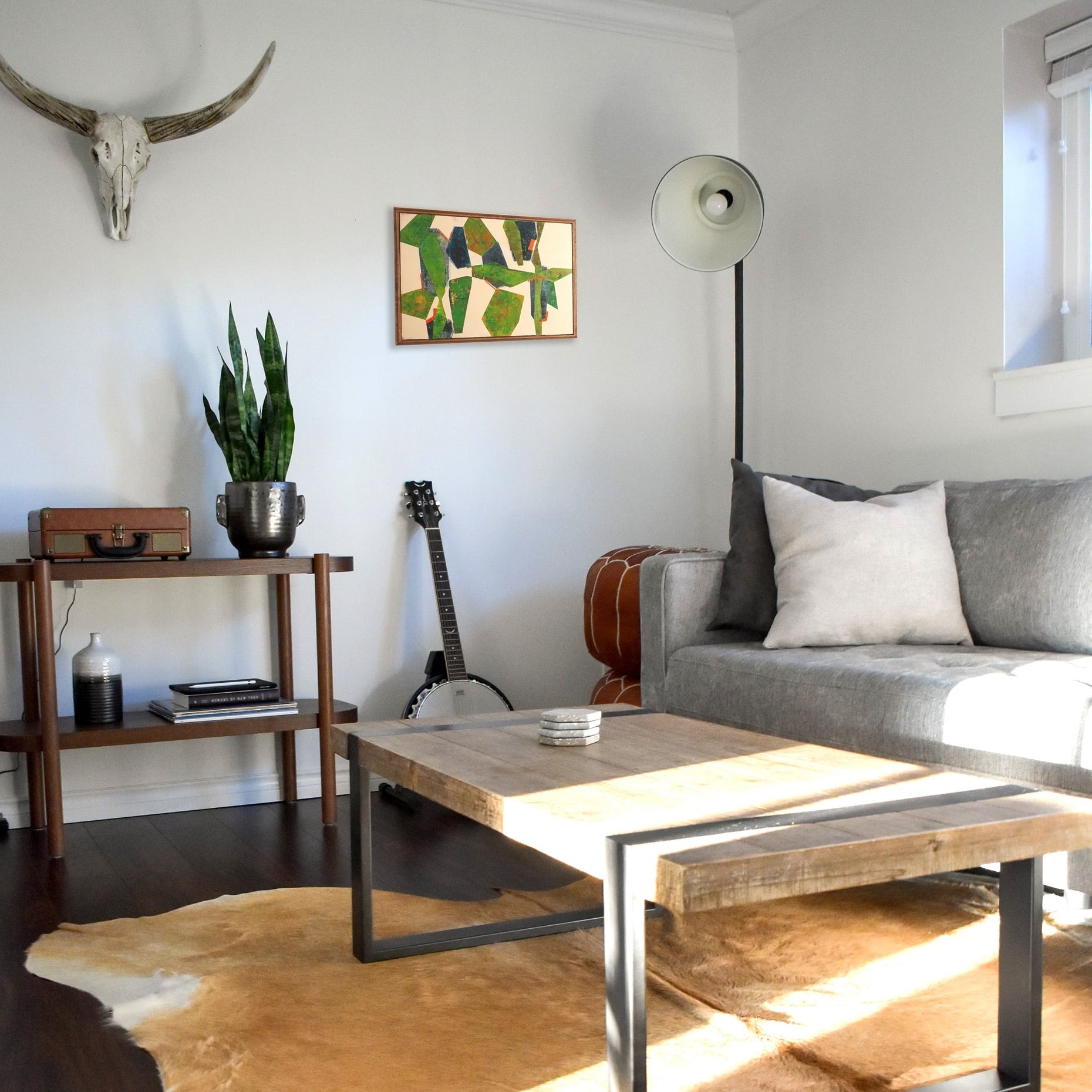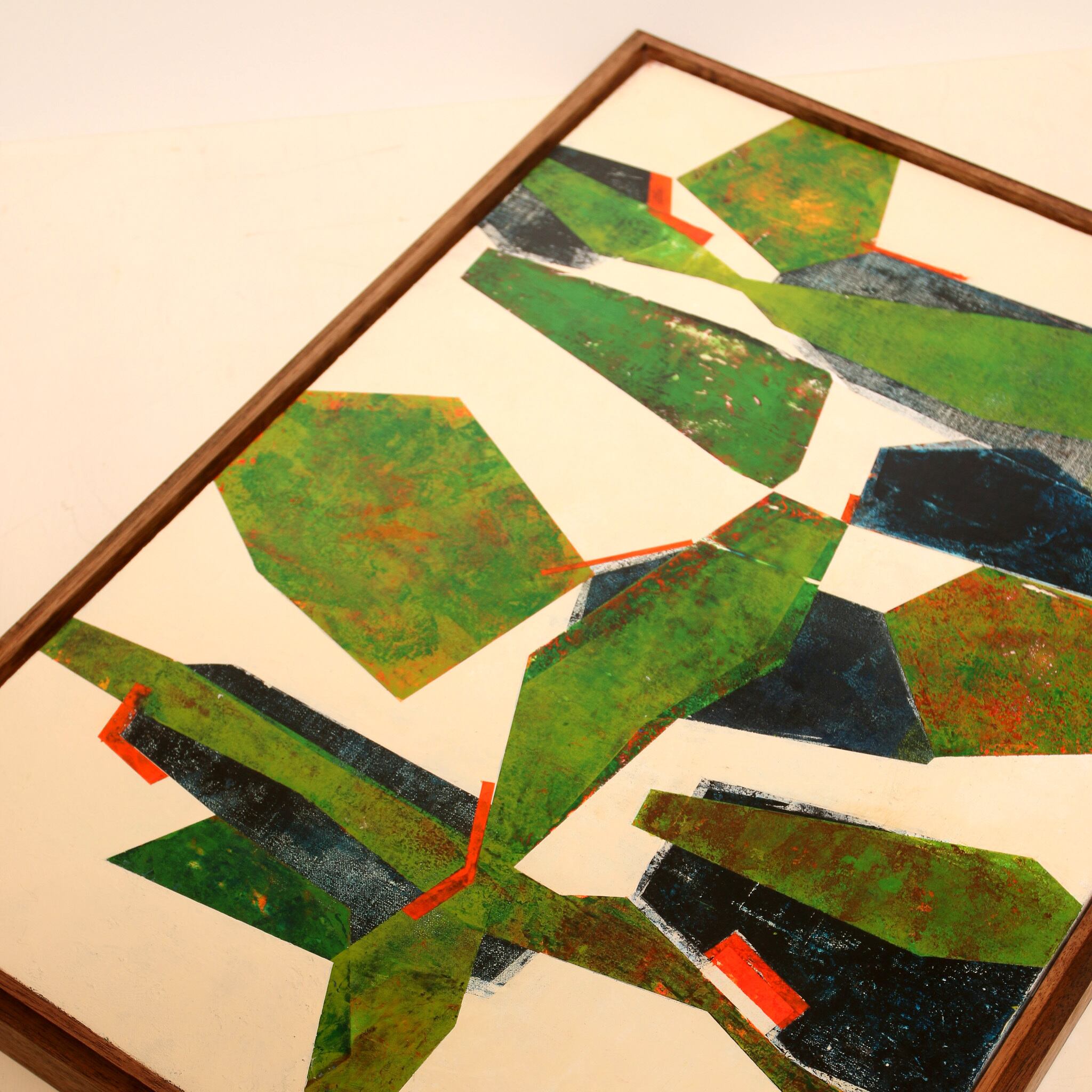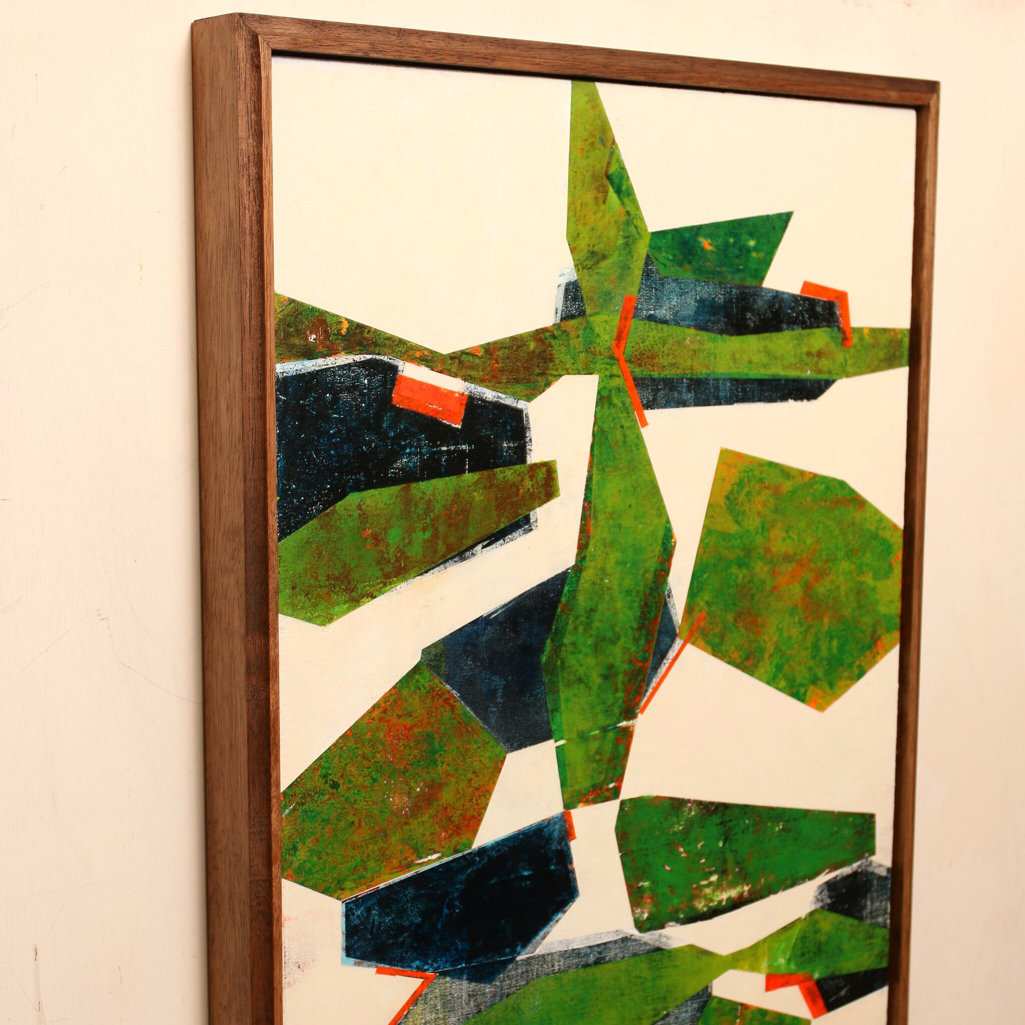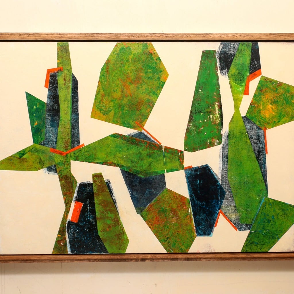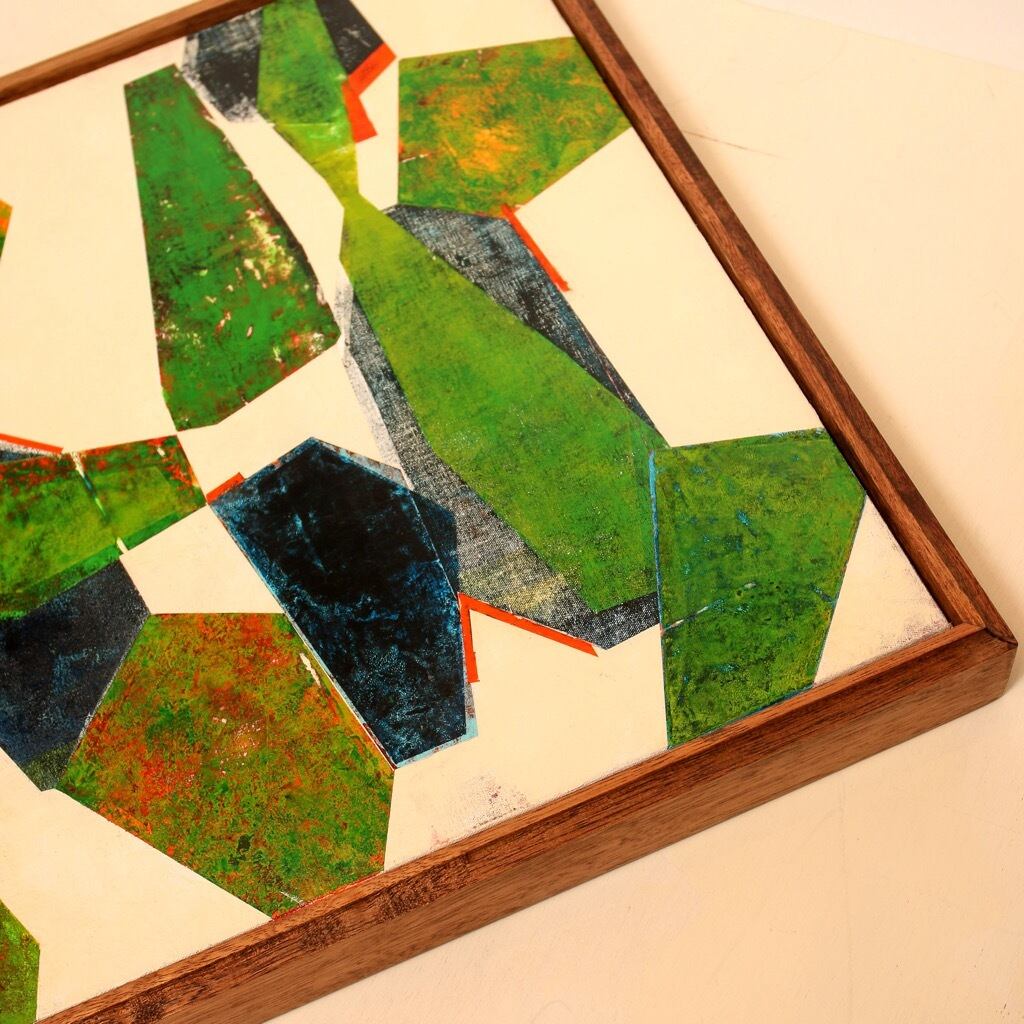 重厚感のあるグリーンとネイビーの色彩が特徴のLittle Warty No.168は、多肉植物の魅力をデフォルメした抽象画作品です。色の重なりによって深みを出し、絵画としてのアート性を追求しました。お部屋のインテリアにアクセントを与え、落ち着いた雰囲気を演出できる一枚です。